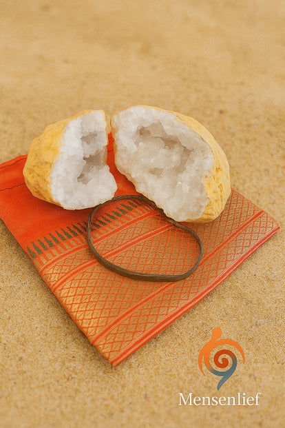 Dit enkelbandje in gypsy-stijl draagt een verhaal in zich dat teruggaat naar oude reizende culturen waarin sieraden meer waren dan alleen versiering. In Roma-tradities en andere nomadische volkeren stond het dragen van kralen rond de enkels symbool voor verbondenheid met de aarde, ritme en beweging. De zachte klank van een belletje was bedoeld om negatieve energie af te weren en bescherming te bieden onderweg.