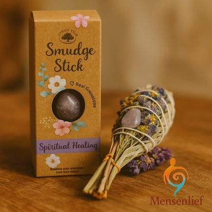 Deze smudge is een geurige bundel van natuurlijke ingrediënten, gecombineerd met een citrien edelsteen, en wordt gebruikt om op een symbolische manier helderheid en nieuwe energie uit te nodigen. Smudging is een ritueel waarbij de rook van brandende kruiden helpt om spanning los te laten en een frisse sfeer te creëren. Oorspronkelijk geïnspireerd op inheemse tradities, maar ook zonder ritueel betekenisvol te gebruiken – bijvoorbeeld voor een moment van rust, reflectie of een frisse start. De citrien voegt een sprankelend element toe, dat staat voor optimisme, vitaliteit en een open blik vooruit.